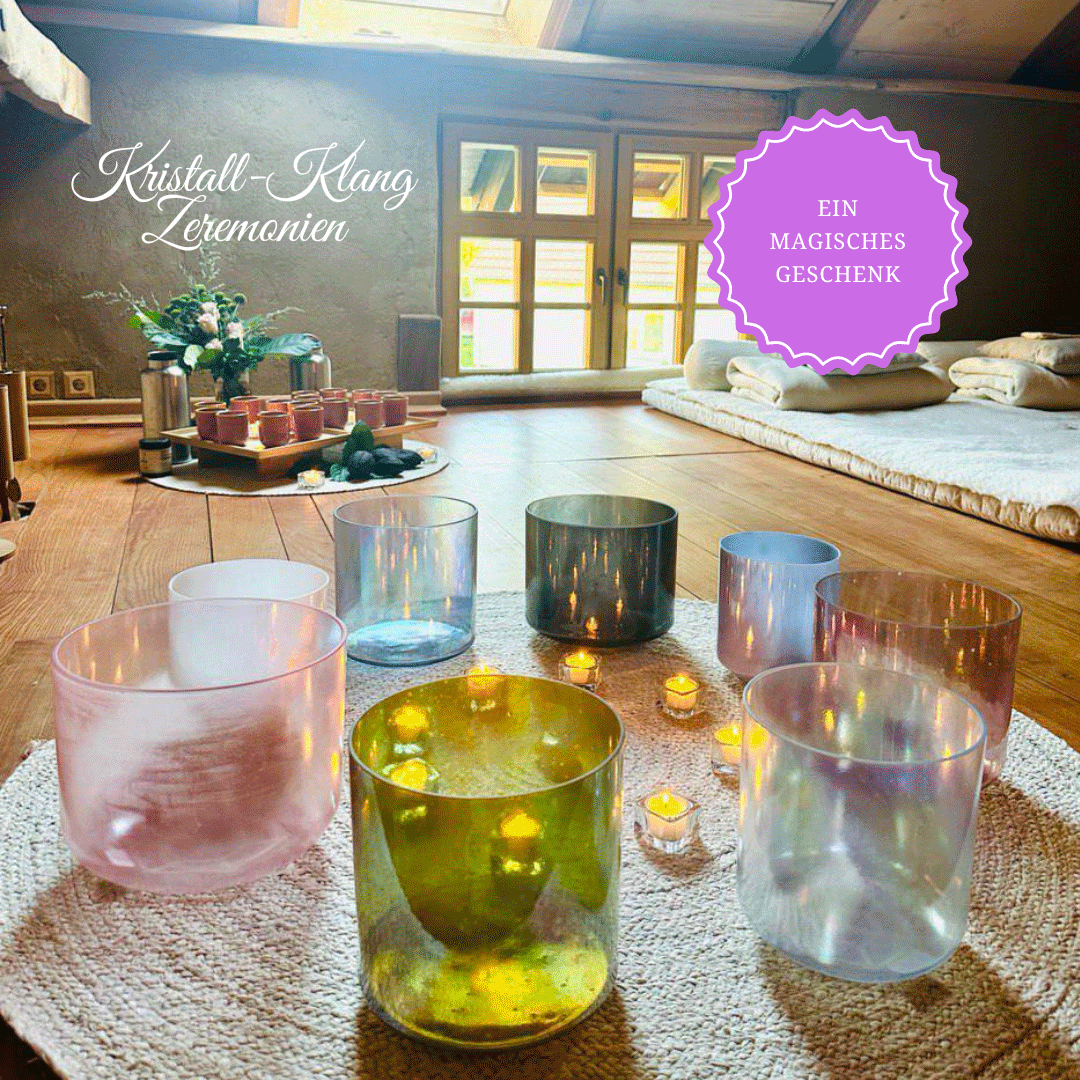 Ich biete einzigartige Kristall-Klang-Zeremonien für Körper, Geist und Seele – sinnliche Räume zum Eintauchen, Loslassen und Regenerieren. Die kristallinen Klänge können deine Selbstheilungskräfte anregen, deinen Transformationsprozess begleiten und zu tiefer Entspannung beitragen.